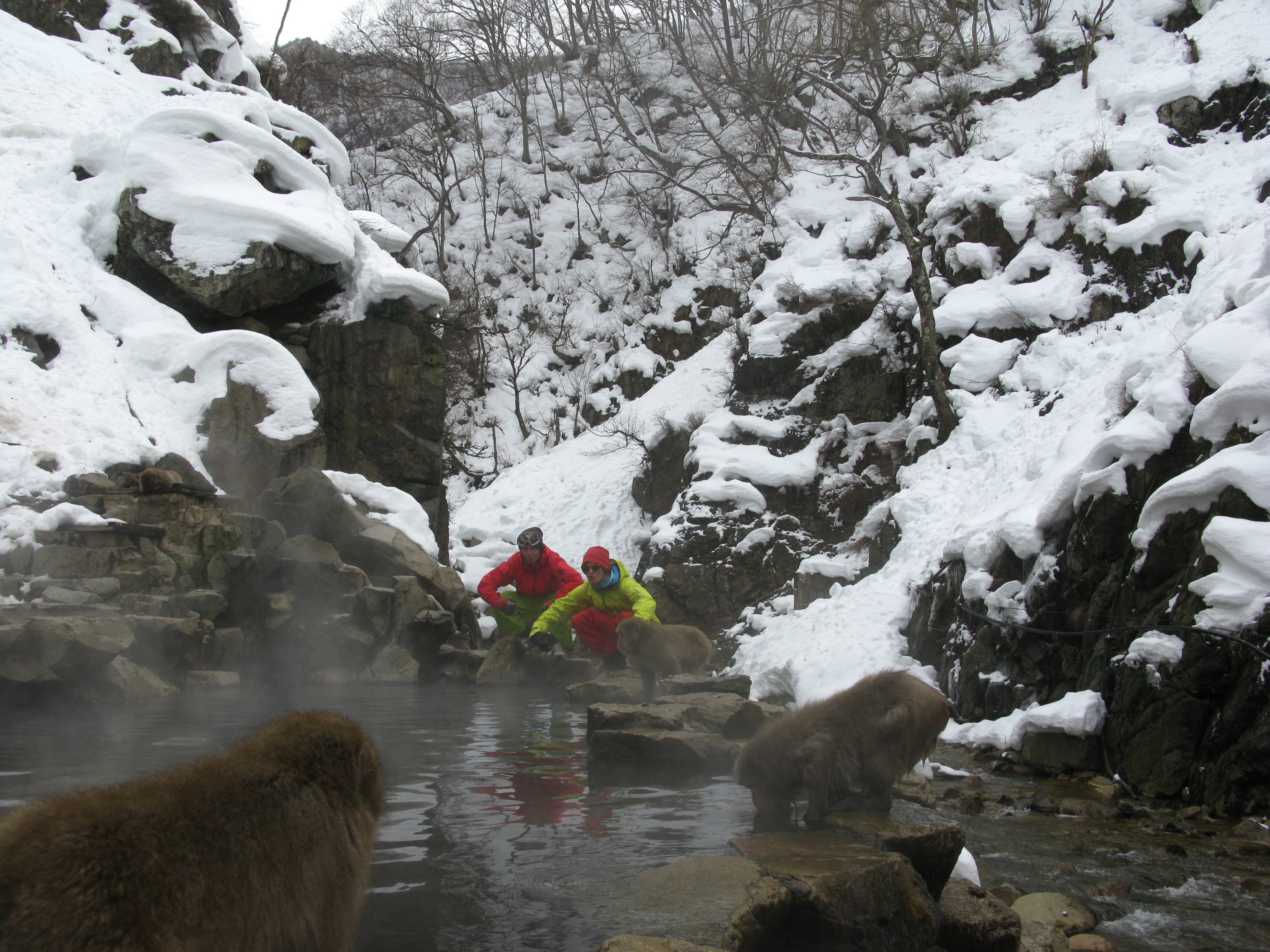 Today I went for a trip with the Nowegians to the monkey onsen before they headed back to Tokyo. Jens took over 400 photos and was in his element at this amazing wildlife experience. Torkel Karoliussen and Håvard Ånesen enjoyed monkeying around on the edge of the onsen. I have been to the monkey onsen over 20 times and I still love checking them out. We also have snow monkeys in Hakuba. Keep an eye out in the Iimori area for a group that like to hang around there.