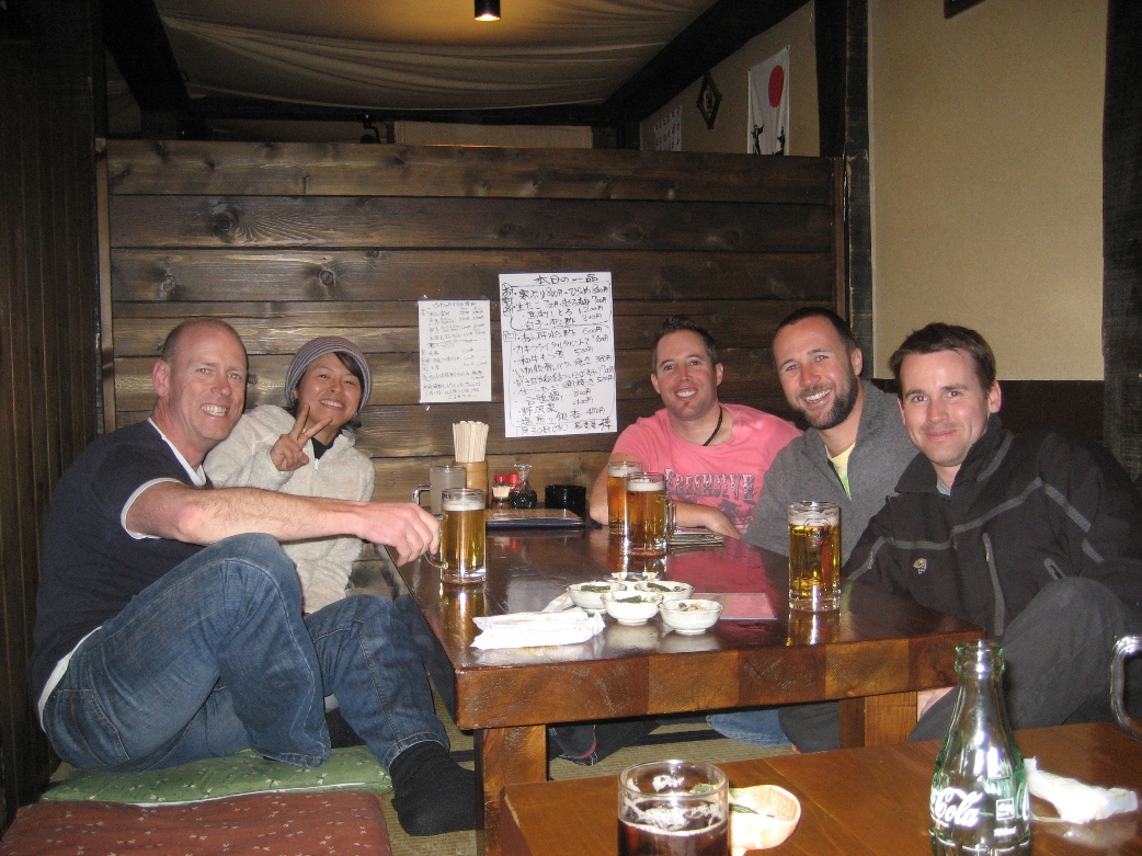 There are so many restaurants to choose from in Hakuba. One of my favorite choices for an all round experience is Hie in Echoland. It is an izakaya which basically means a place to come and drink sake however they serve up a great menu of small dishes which you order and share around the table. The idea is to order some drinks when you sit down and then when they arrive to the table you start ordering some food and just keep ordering until you are full. I can recommend the PadiPadi Fried Potato, Tori kawa, Yuke, Baked Avacado, Basashi, Karage and the Baked Yam with Cheese. It’s a case of order a bit of everything and if you like it you can order another plate of it. When you want to order from the private rooms there is a buzzer on the wall to alert the waiters. The atmosphere is very Japanese, the beer is cold and the food is outstanding. I rate this restaurant highly. Remember shoes off when you go into the tatami (cane flooring) areas.