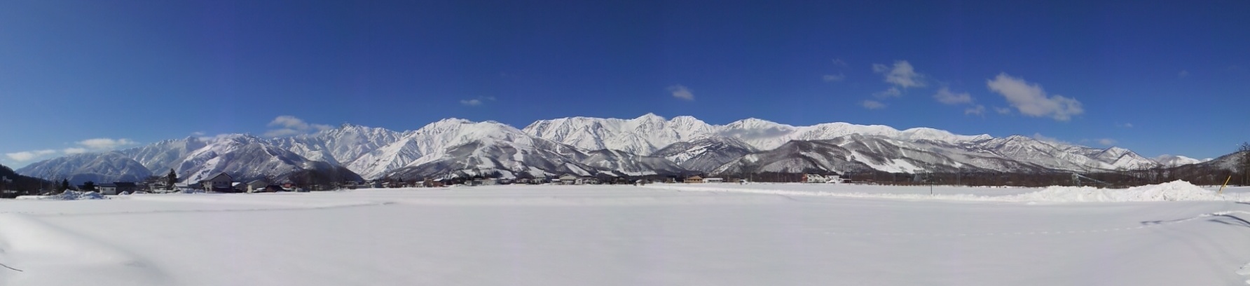 panorama shot of Hakuba on a perfect bluebird powder say