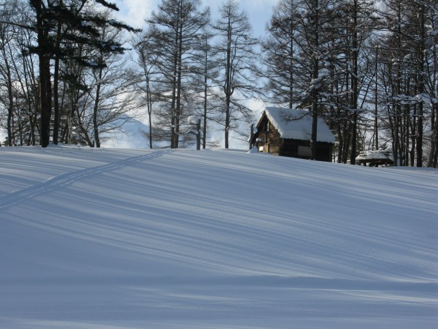 Another brilliant day up at Happo today. Out the door bright & early to get one of the first gondolas up the mountain, then straight up the Alpen Quad on first lifts… a great start to the day. At the top of the Alpen Quad, we see movement over at the Grat Quad (the highest chair at Happo). Tony hot-foots it over to check it out, but they’re not quite ready. We entertain ourselves under the Alpen Quad for a run or two and – perfect timing – Grat Quad opens just as we pull up.